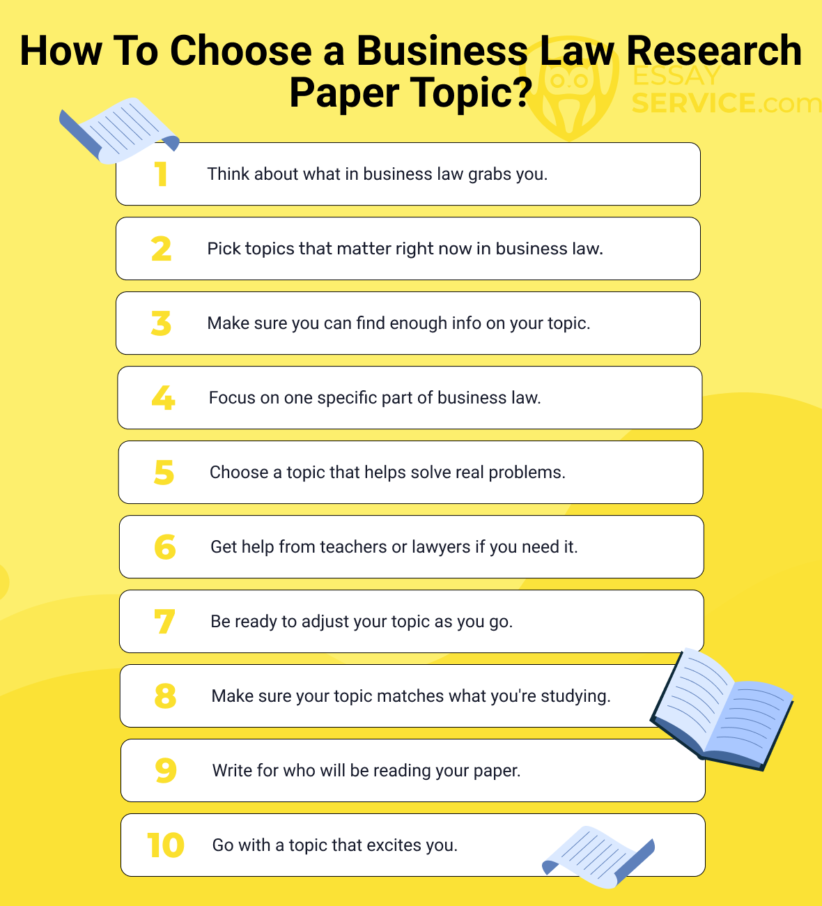 But wait, there's more! Alongside these diverse business law research paper topics, we'll equip you with invaluable tips to navigate the selection process seamlessly. From identifying the most compelling subjects to crafting a polished paper, we'll be your trusted guide every step of the way.
