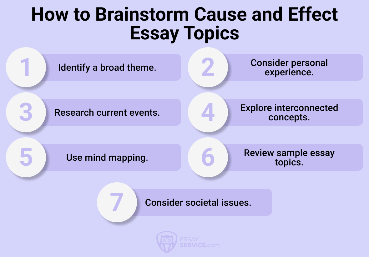 Examining essay topic examples can be instrumental for students tackling cause-and-effect essays. These examples serve as valuable sources of inspiration and elucidate the diverse range of subjects that can be explored within this genre. By perusing various essay topics, students can identify patterns and themes, helping them choose a compelling and relevant subject for their own writing. Moreover, exposure to different topics provides insights into the depth and breadth of potential cause-and-effect relationships, stimulating critical thinking and creativity. If topic examples don’t help because of writer’s block or short deadlines, using a paper writing service is known to be perhaps the best solution.
